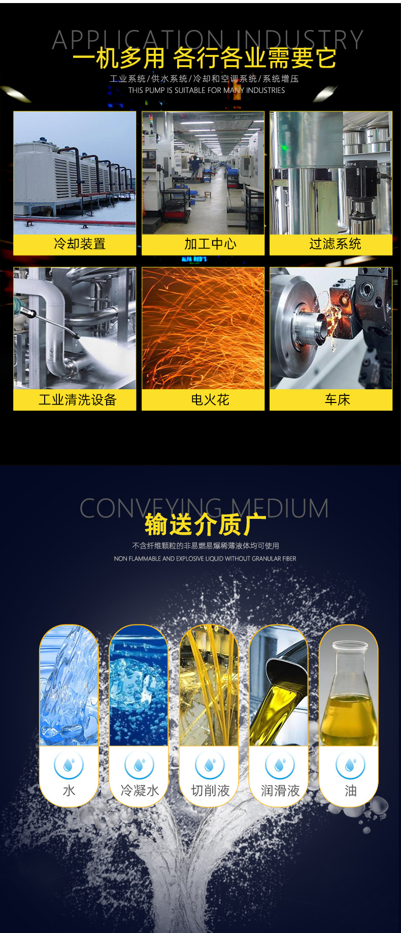 應用范圍:水廠過濾與輸送,分區送水、主管增壓、高層建筑二次供水;流程水系統、清洗系統、高壓沖洗系統、消防系統;冷卻、鍋爐給水和冷凝系統、機床配套、酸和堿;空調系統;超濾系統、反滲透系統、蒸餾系統、分離器、游泳池